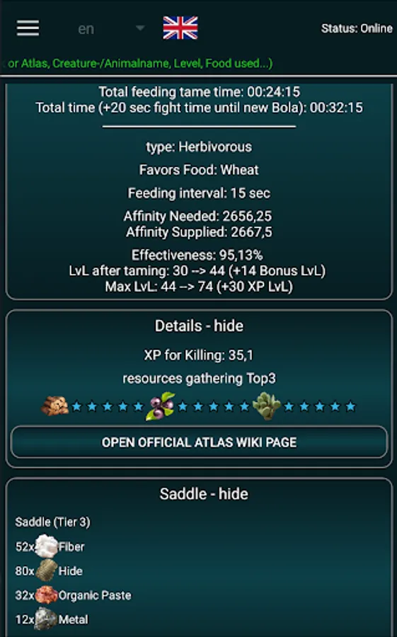 • Taming calculator and guide for every tameable animal or mythical creature in Atlas and all coming DLCs