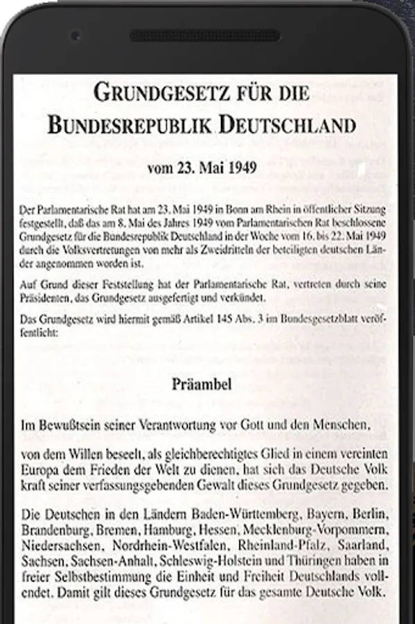 "The "Constitution of Germany" app is the perfect companion for anyone interested in the Constitution and political system of Germany. With our app, you have full access anytime, anywhere to the complete German Constitution, including all changes and additions.