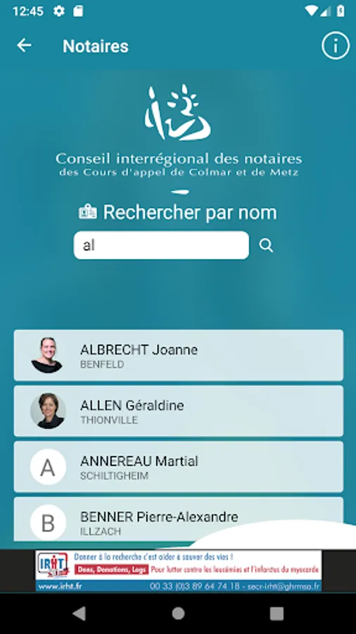 This application will allow you in a few moments to find a notary or a study by city or name.