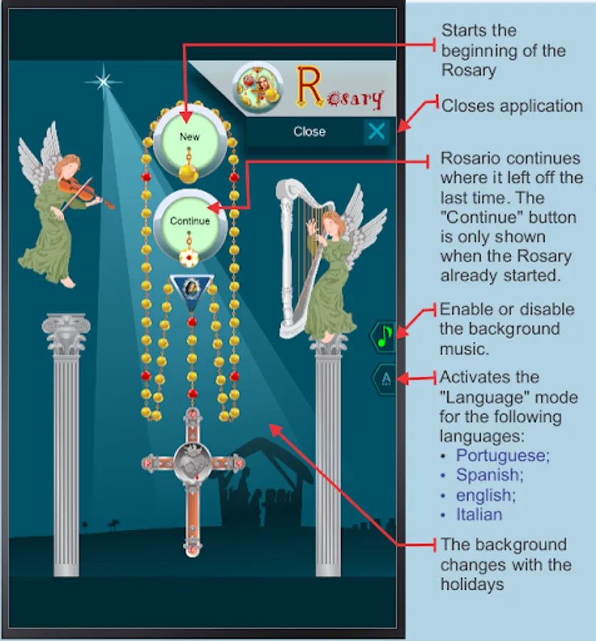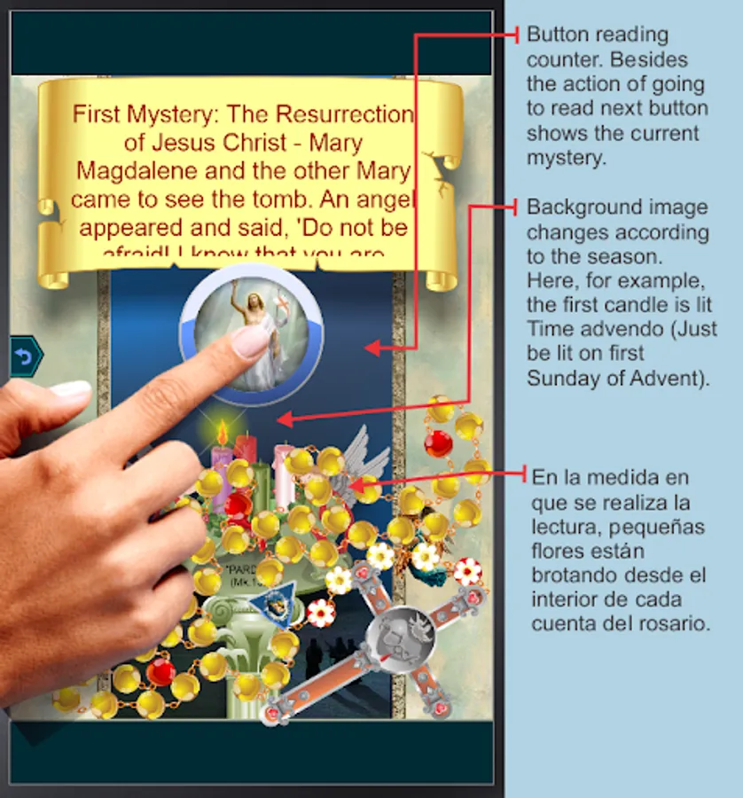 The Rosary is an application that teaches and helps to pray the Rosary.