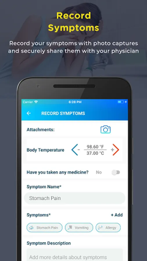 - Record Symptoms with Photo Captures: