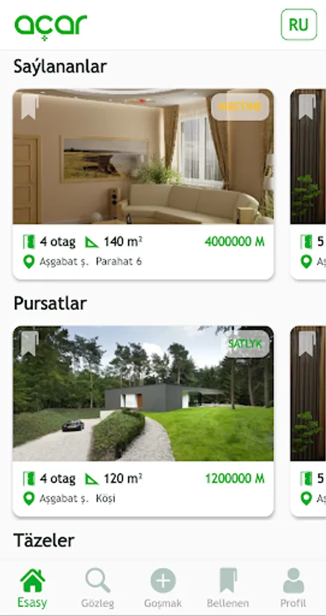 Açar - is a special application for real estate advertising in Turkmenistan.