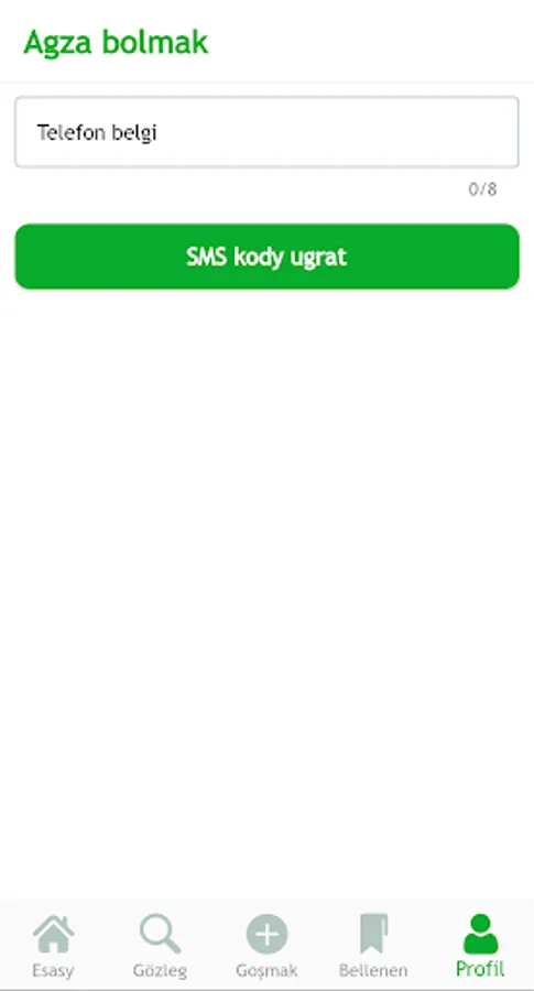 • Öz telefon belgiňiz arkaly ulgama agza boluň.