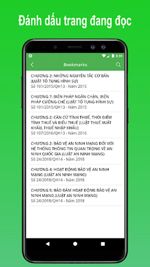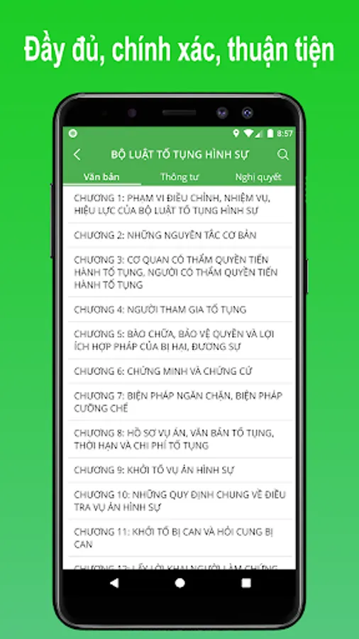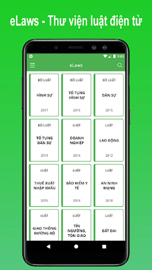 eLaws is the offline electronic library application for mobile devices. With eLaws, you can easily, quickly and accurately look up the information of laws, laws, legal documents, decrees and resolutions of the State of the Socialist Republic of Vietnam.