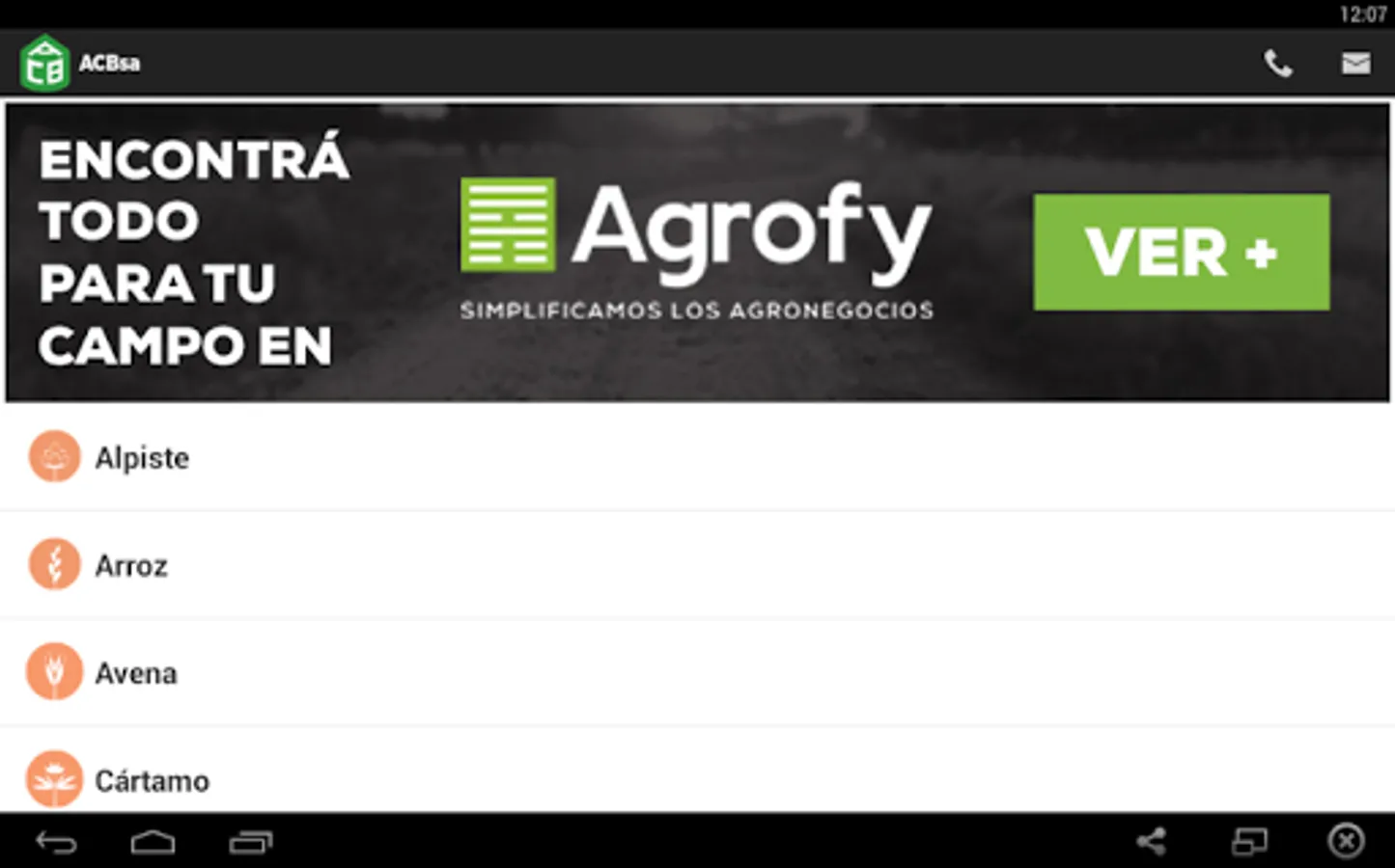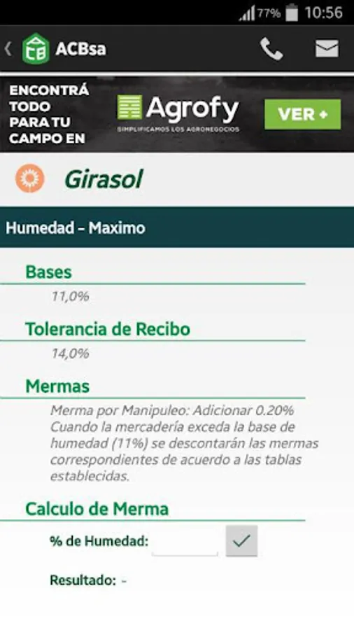 It is an app that allows access, in a "friendly / dynamic" to the Rules of Marketing of Grains and Oilseeds, anytime, anywhere, to help decision making. By "any time" a: preharvest, harvest, postharvest, cargo bags, different stages of marketing decision-making destination, etc. And everywhere, it is not necessary to connect to the internet to use the app.