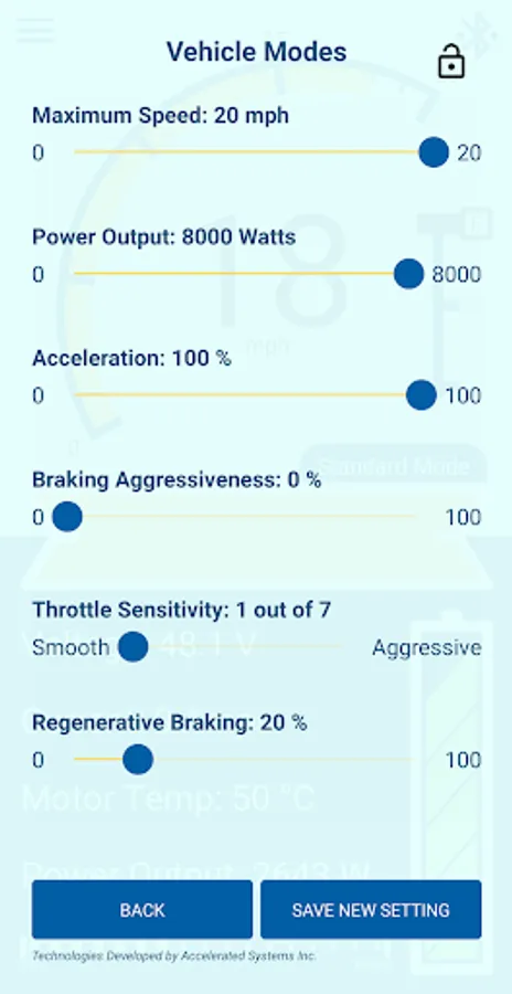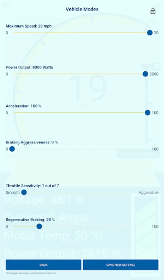 This App allows you to review & customize your golf car's performance after installing TEEKON Speed & Range upgrade kit by SilverWolf Motors. You may opt to continue with the default settings or customize it with your own.