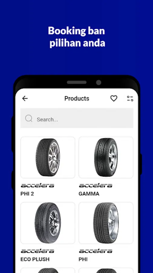 Untuk mencari produk ban Accelera, ukuran ban, model ban, kategori ban dapat dengan mudah informasi didapatkan melalui aplikasi Accelera.