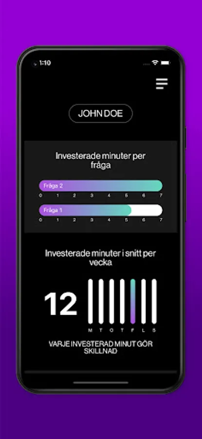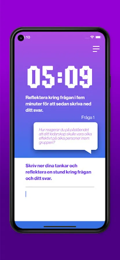 Every day during the program's 30 days, you will be presented with a question in the app. Around this you can reflect and write down your thoughts. Via notifications, you are alerted to answering today's question. When you click on the question, a clock counts up. The intention is that the answers should not be rushed. If you miss answering a question, you can answer two questions the following day, but to get the most out of your 30 days, the method is to answer one question a day.