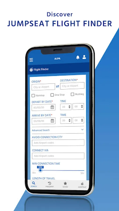 The ALPA App is a valuable tool for ALPA members and the aviation community. Our unique Flight Finder allows ALPA members to search jumpseat availability across commercial and most cargo carriers and see airline-specific jumpseat information and airport KCM locations—and now you can save flights to be notified of flight status changes.