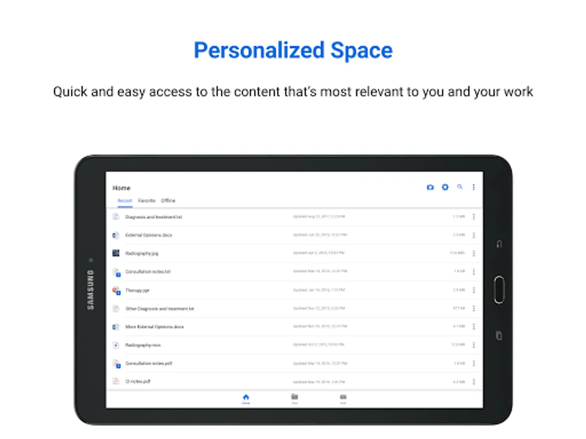 • Unified access to connected ECMs like SharePoint and Document, as well as cloud-based repositories like Dropbox, OneDrive for Business and Box