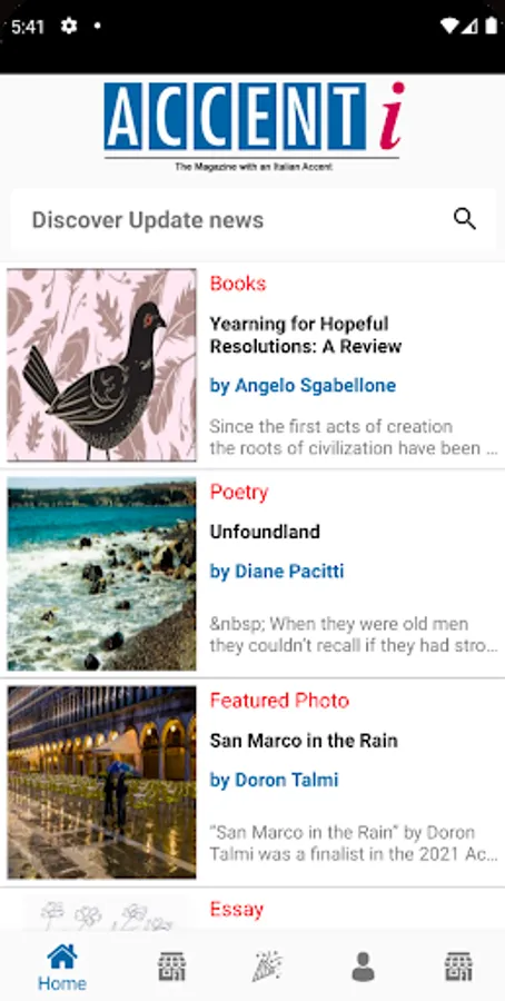 The mission of Accenti Magazine is to document the evolution of the Italian-Canadian experience and disseminate its expression through the publication of literary and creative works. Accenti also aims to act as a conduit for dialogue among its readers and contributors.