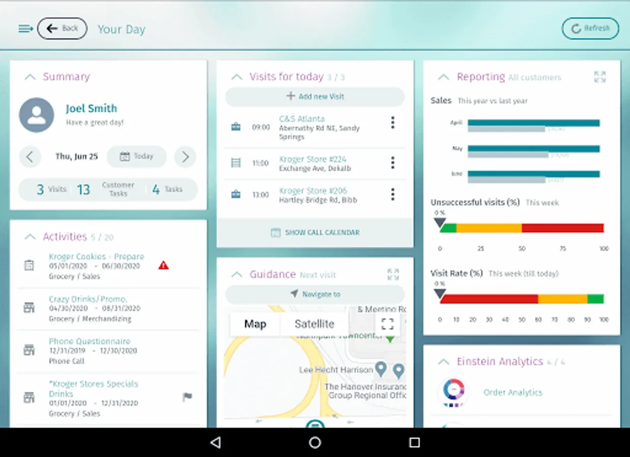 Features include Visit Planning, Execution & Route Management, Questionnaires & Surveys, Picture taking, Visit Notes, Asset Management and Order taking, Call Calendar (daily & weekly calendar, drag & drop), Event based planning (by job lists), Daily report & ‘To-Do’s’. With additional Delivery Execution capabilities including delivery of pre-ordered goods, ad-hoc van sales, empties & return handling, complex pricing, mobile printing and barcode scanning.