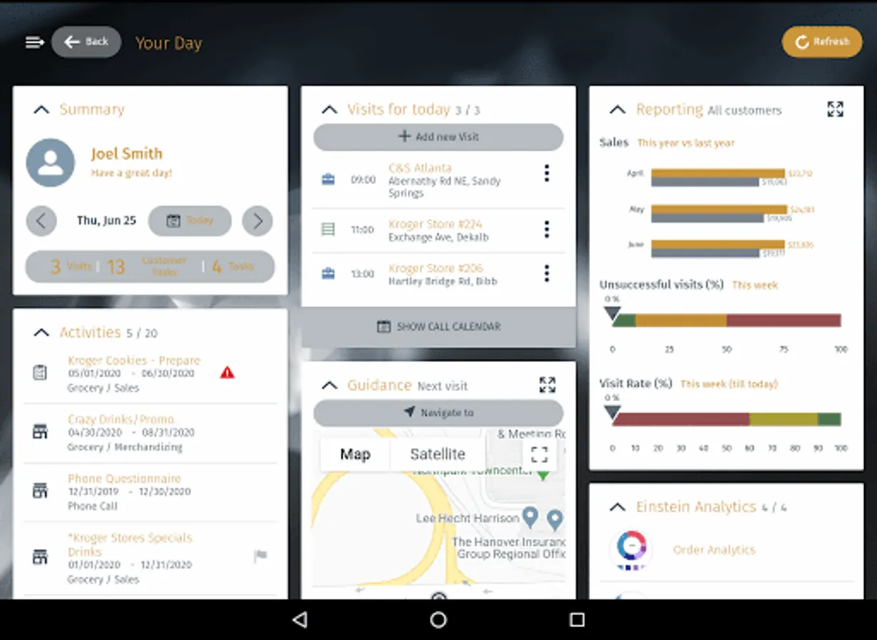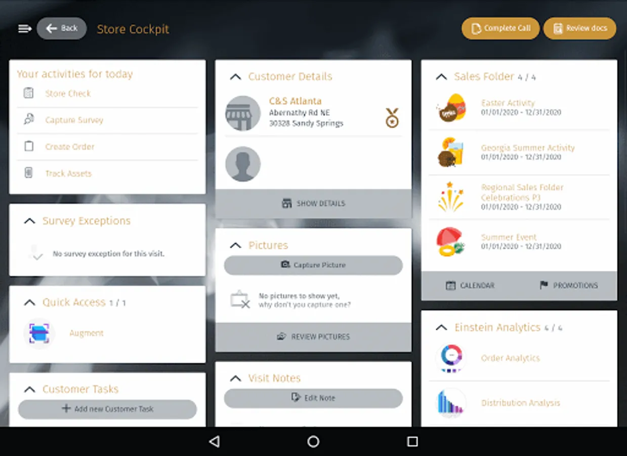 The solution provides broad functionality to enable users to plan effectively, complete surveys, identify out-of-stocks and take orders.