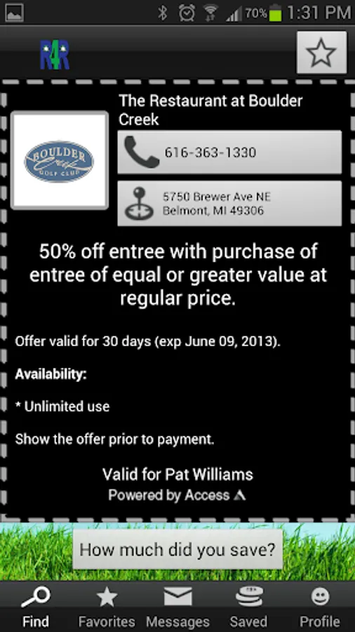 If you tap on the coupon of your choice, followed by the Redeem button, a digital Reward coupon will be downloaded to your phone. It’s that simple, you no longer have to waste paper, or find a way to get to a printer you can use, the coupon just appears on your screen. The coupon screen has some additional features as well, you can tap a button to call in an order, so it will be ready when you get there, or you can call up a map and get turn by turn directions to either walk, bike, or drive, to pick it up. In addition, the R4R App has a Favorites List, where you can save your popular coupons and a Savings Page that shows how much you have saved. We hope you will explore all of its features and we look forward to hearing how the program works for you. Please use the Comments page to send us suggestions and use the Facebook and Twitter links to promote stores and services that you believe other R4R members would appreciate.