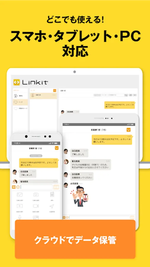 [Comfort] All materials are stored in the cloud, so member lists, messages, etc. are synchronized on multiple devices (desktop computer, laptop computer, tablet, smartphone). You can use different devices according to the situation, from work that requires a lot of movement to work that requires concentration at your desk!
