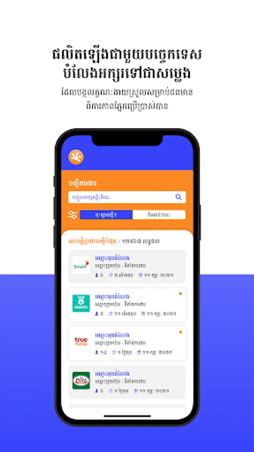 OAKAS (employment) app is developed to contribute to ensure inclusive employment in Cambodia and tailored for the needs of people with different types of disabilities. This app is an official app managed by Department Welfare of Person with Disabilities (DWPD) of Ministry of Social Affairs, Veterans and Youth Rehabilitation (MOSVY) supported by Australian Government through Australia-Cambodia Cooperation for Equitable Sustainable Services (ACCESS).