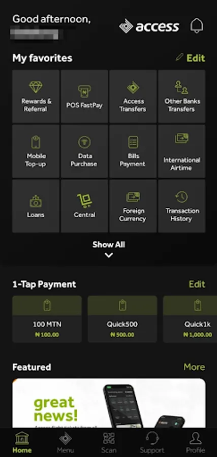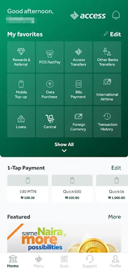 The Access More App is an innovative mobile payment application that offers a more than banking experience. The App is built to help our customers consummate their financial transactions, payment solutions and enjoy a lifestyle experience. Prospect customers are welcome to become account holders by downloading the App and onboarding themselves on the platform seamlessly.