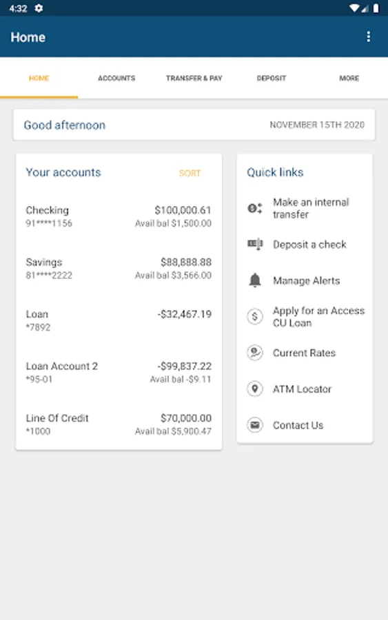 Access Credit Union members are able to access their accounts wherever life may take them. Download the free Mobile App today to check balances, transfer funds, deposit checks, pay bills, or to find the nearest surcharge free ATM. Plus your information is safe and secure. Take Access CU with you with the Access Mobile App!