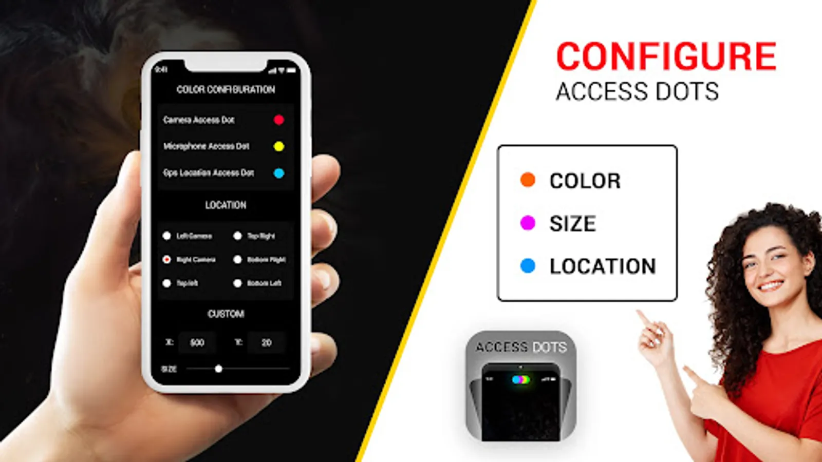 SecureDot Access Indicator allows you to set color access dots on the screen. Like, if you have a punch-hole camera then color access is securedot to wrap around them and also customized size of secureDot access.