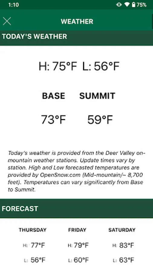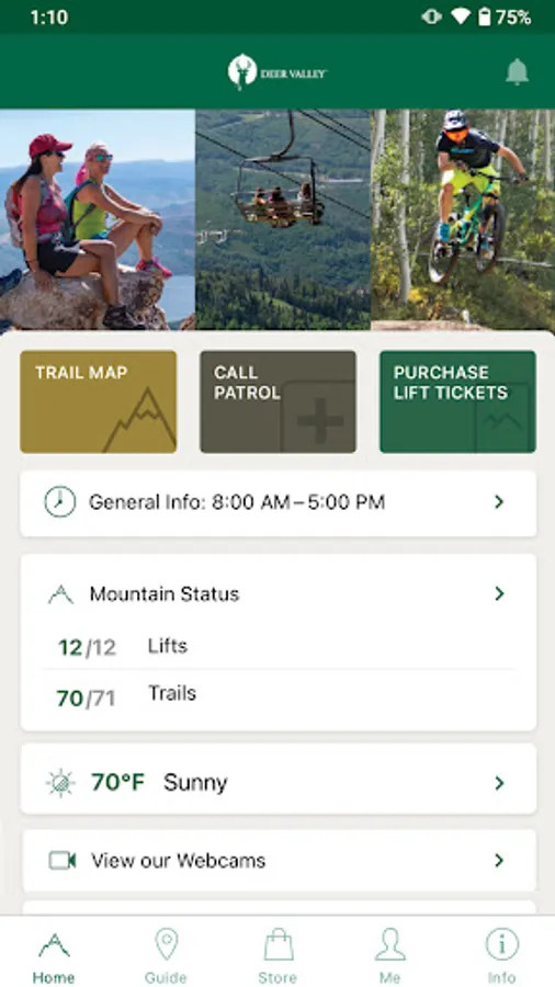 With the Deer Valley Resort Guide, get more out of every day with up-to-date lift and trail status information, local weather, mountain conditions, a trail map, as well as a complete listing of our restaurants and menus. With our app as your guide, you can make restaurant reservations, order and pay for Grab and Go items in advance, and much more. App users can also receive real-time resort operations updates and personalized experiences based on their likes and interests. You will find everything you need to make your day at Deer Valley the best day ever!
