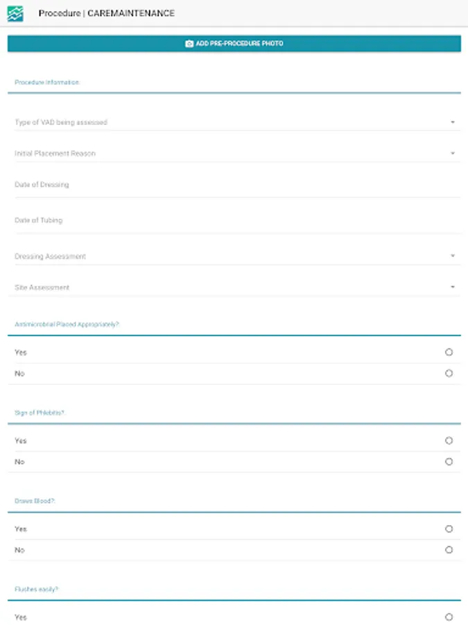 Care and maintenance reporting for vascular access care provider