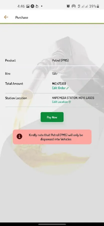 This App facilitates Fuel products purchases at Mega Retail Stations of NNPC Limited
