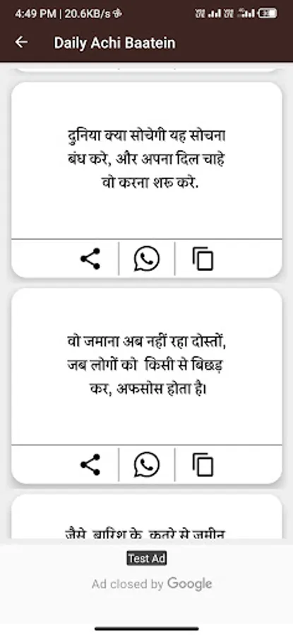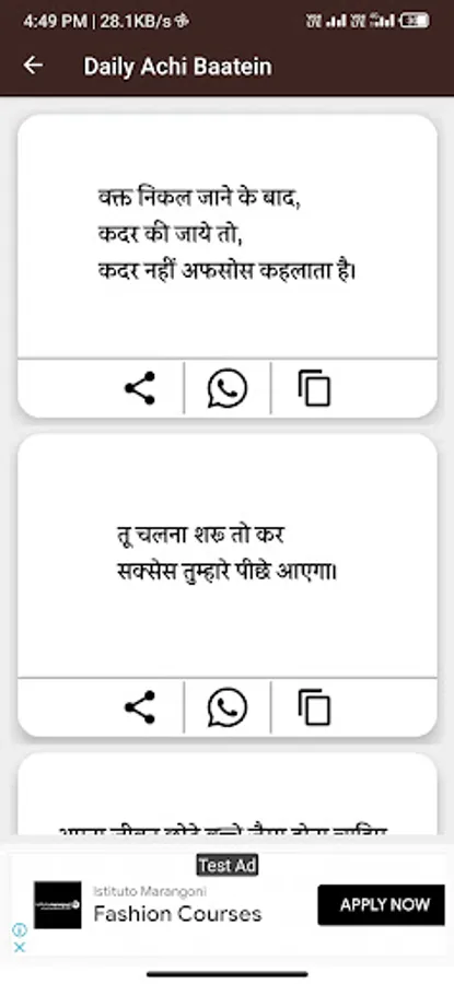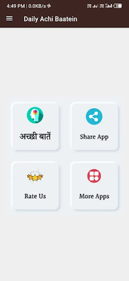Is app mein aapko milenge bahut sare motivation aur jivan mein aage badhane ke liye acche vichar | jab bhi jivan mein aap niraash ho to "Daily Achi Baatian" App ke vichar aapko motivate karne aapko Khushi dene aapko jivan mein aage badhane ki Prerna denge Ache vicharon ko Apne jivan mein utarane ke liye "Daily Achi Baatian" se Jude ise jaldi Download Karen