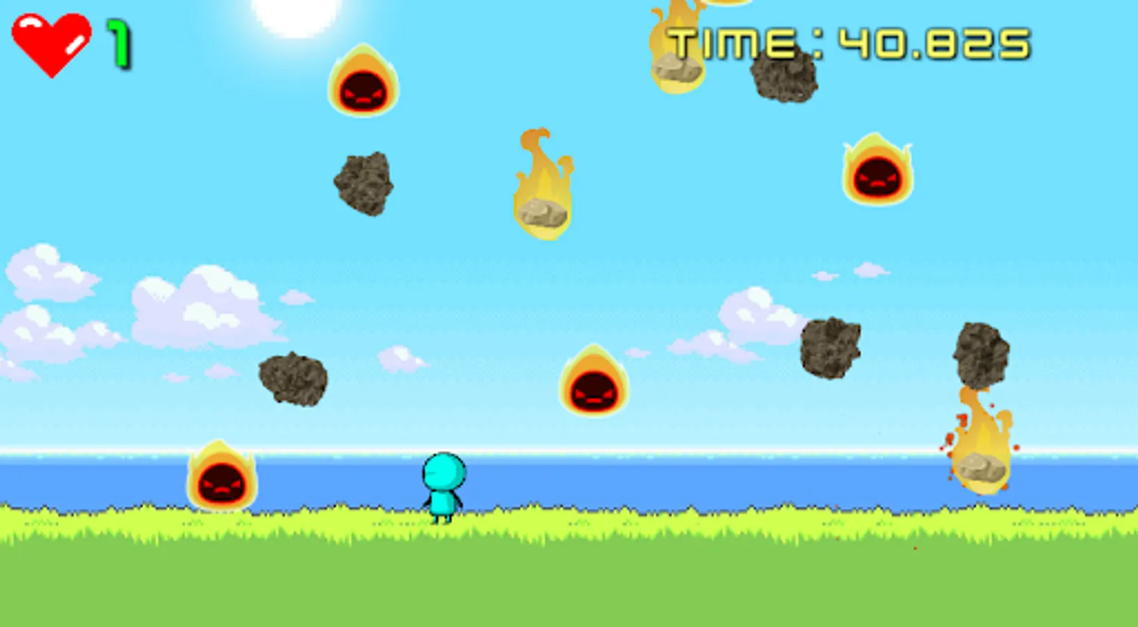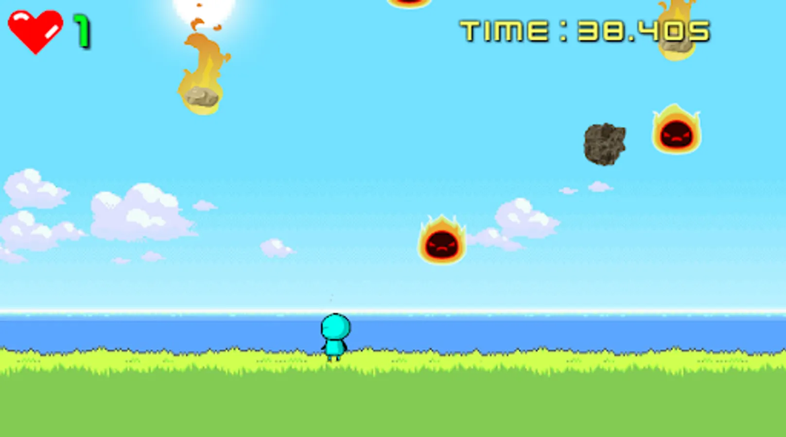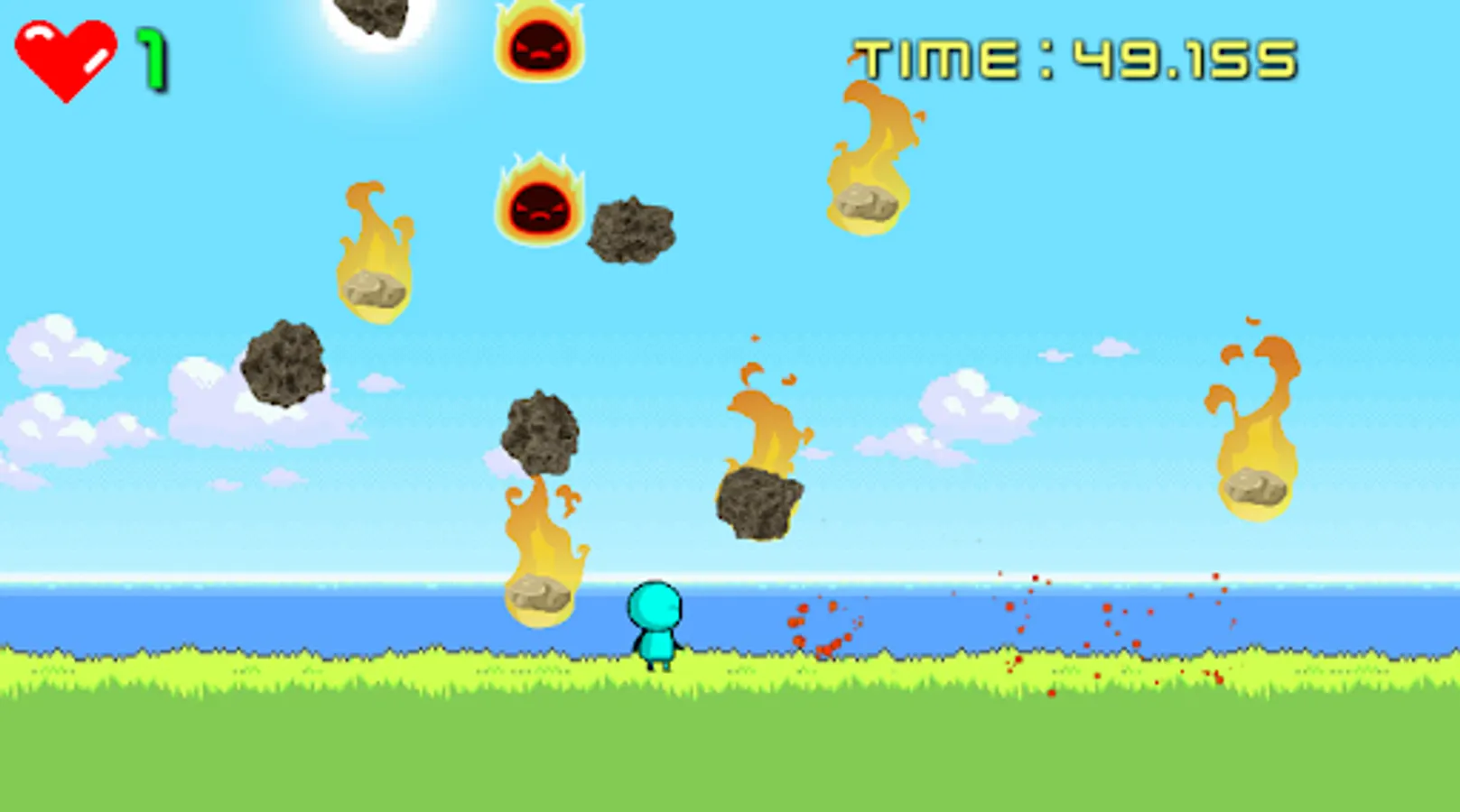 Survive for as long as possible while various objects fall from the sky . Longer you survive , speedier it gets .
