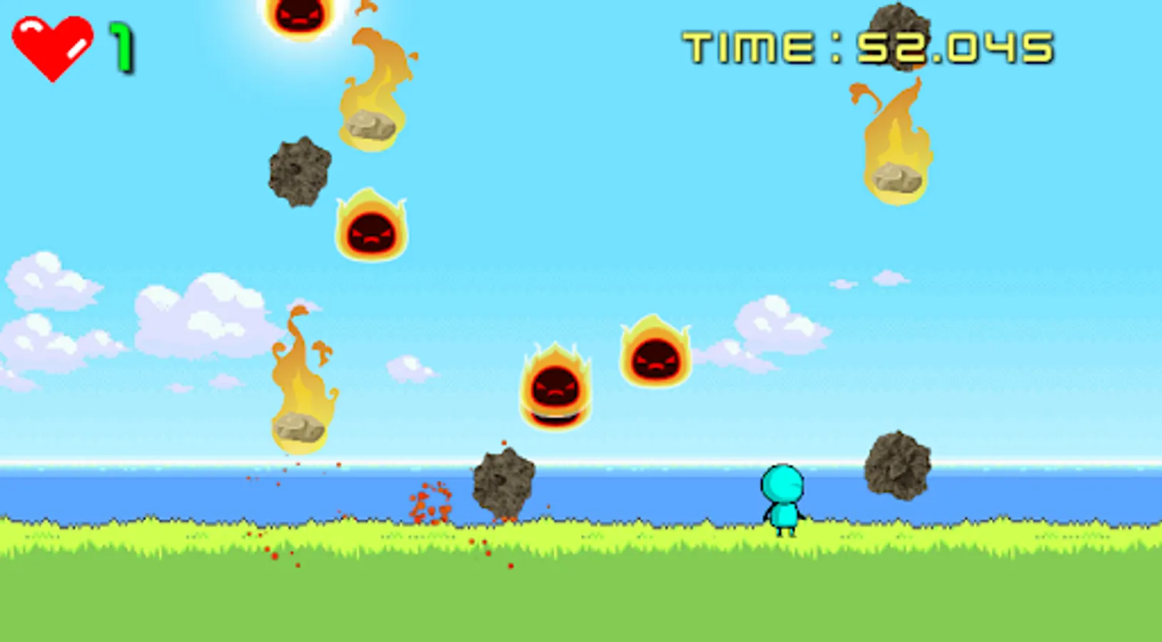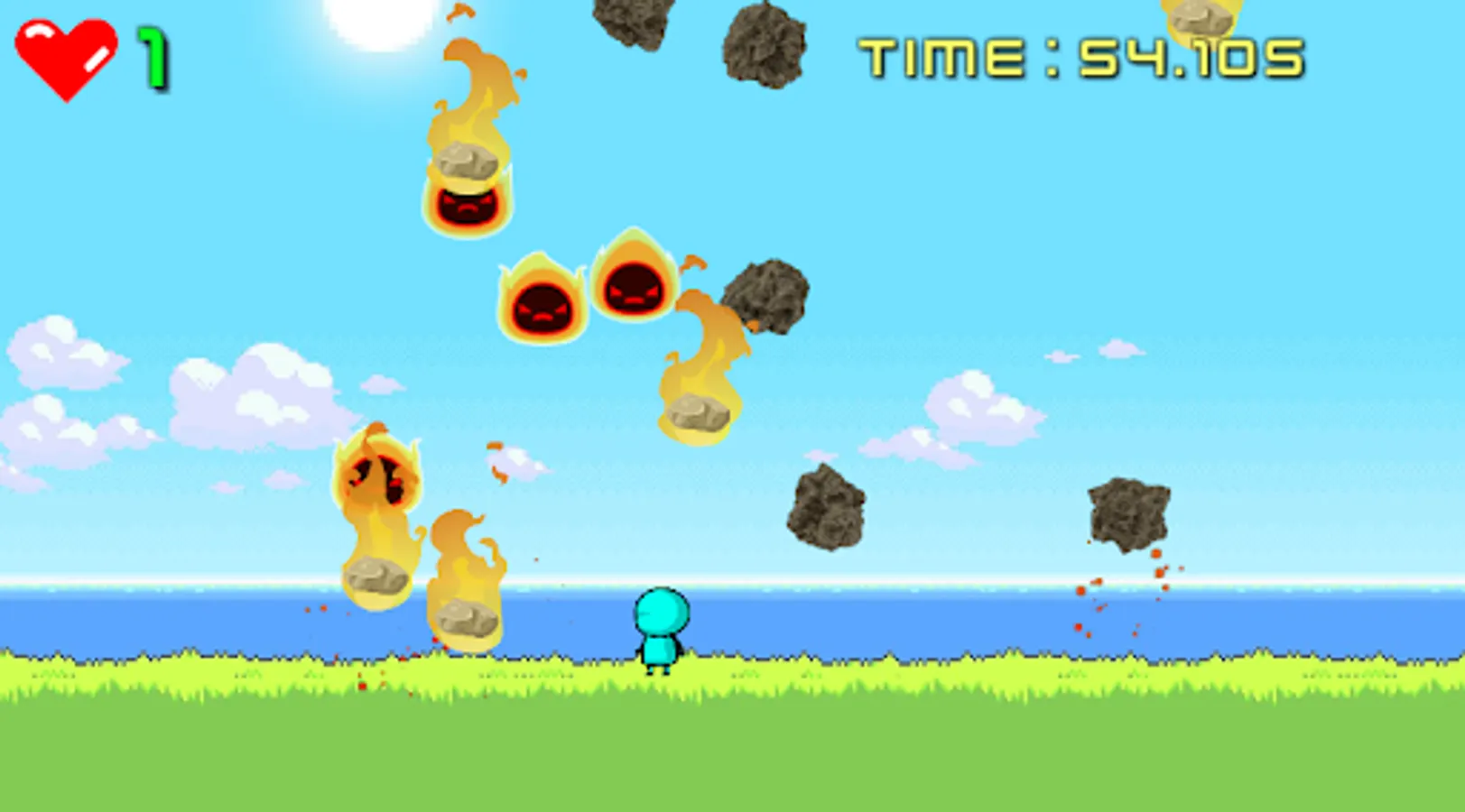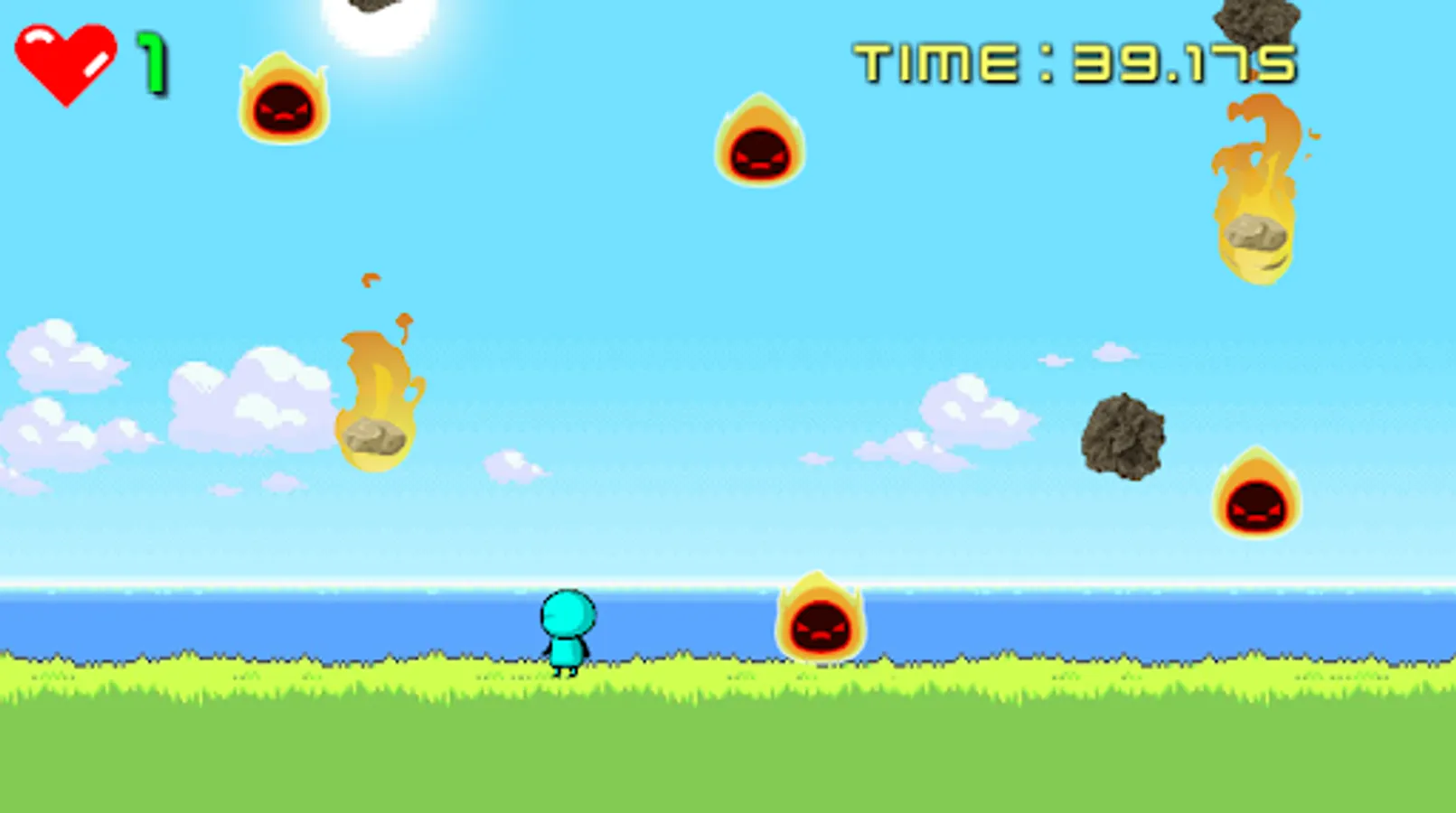 Survive for as long as possible while various objects fall from the sky . Longer you survive , speedier it gets .
