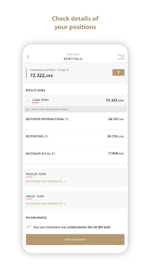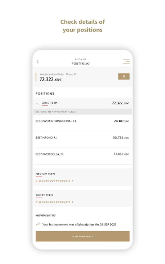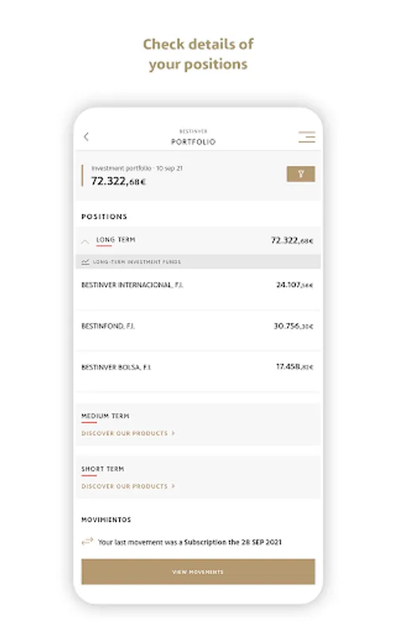With the BESTINVER app, managing your investment portfolio is easy and straightforward.
