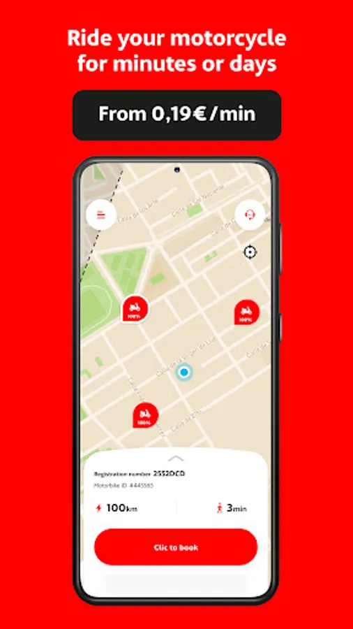 3. Find and book your nearest shared motorbike, put on your helmet and... enjoy!