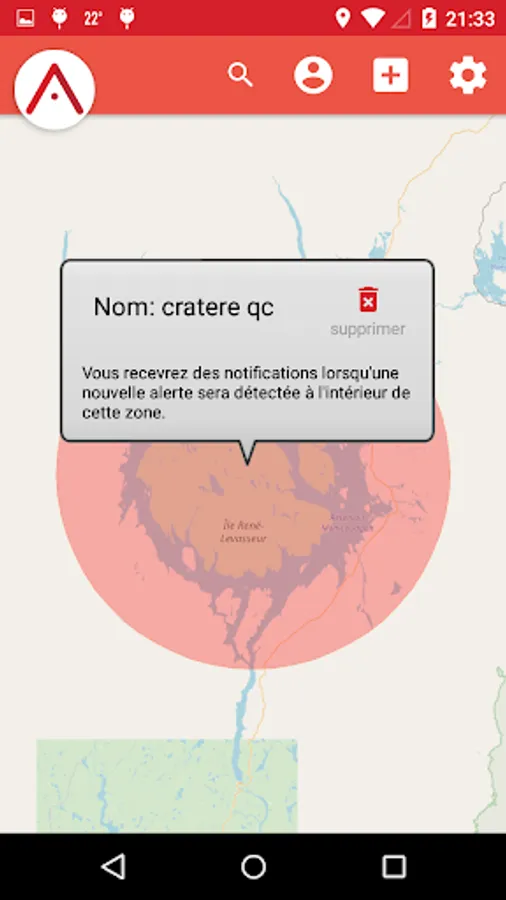 Adds "supervised zones" that register the user in question with a region of Quebec. If an alert appears in this area, the user will receive a notification on each device to which their account is linked.
