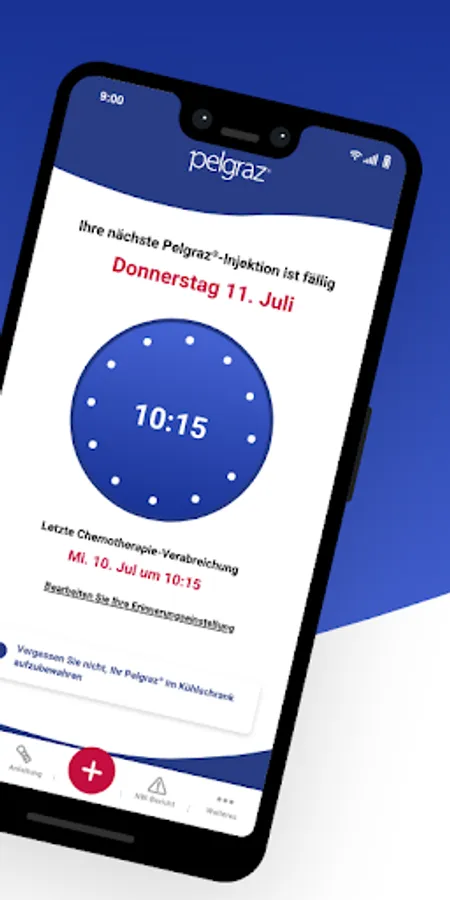 The app helps to remember when it's time for the next Pelgraz® injection. Indicate when you had your last chemotherapy treatment and when you should inject Pelgraz®.