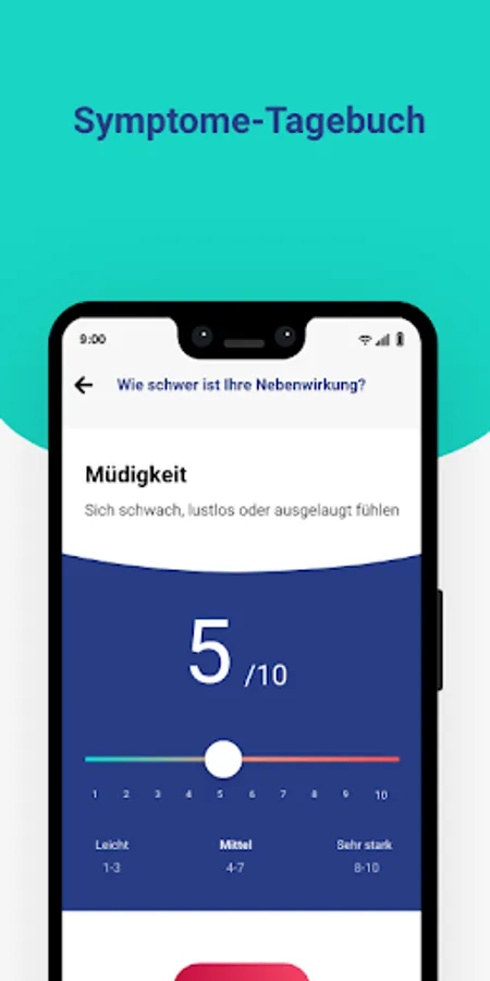 Here you can log what symptoms you have and in what severity. This will allow you to target problems at the next appointment if you choose to share this information.