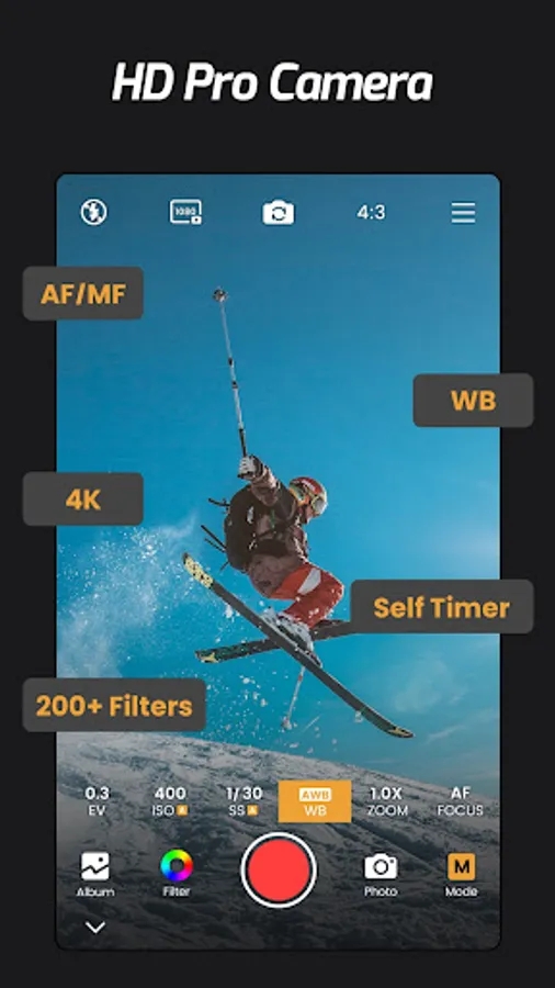 ● Manual control of Exposure, Shutter, ISO, Focus, and White Balance.