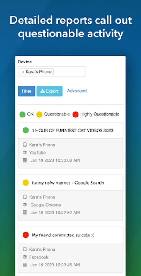 As one of the leading accountability apps, our advanced reporting is trusted by thousands of families and individuals.