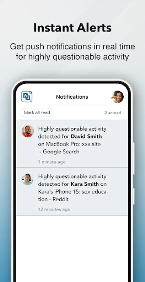 The Accountable2You Reports app gives accountability partners secure, real-time access to detailed activity reports and instant alerts—without needing to log in to the website.