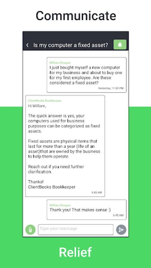 - No time for appointments? You have access to a bookkeeping team through the message center