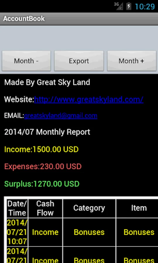 4.There are a variety of statements distributed chart, bar chart, and detailed monthly revenue and expenditure table shows the financial position