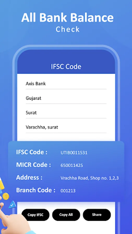 One of the key features of this user-friendly financial app is that users can check their balances at all banks using their IFSC codes. The app offers a huge list of IFSC codes for almost all banks, making it reliable for users to seek the information they need more effectively and efficiently. Additionally, users can also go for an IFSC code using a PinCode, making it even smooth to catch the information they need.