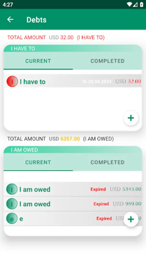 Долги. Долги создаются просто. Можно создать "кому должен", и наоборот "кто вам должен". Можно завершать эти долги, но их можно также удалить или же оставить, чтобы знать кому занимал или кто был тебе должен.