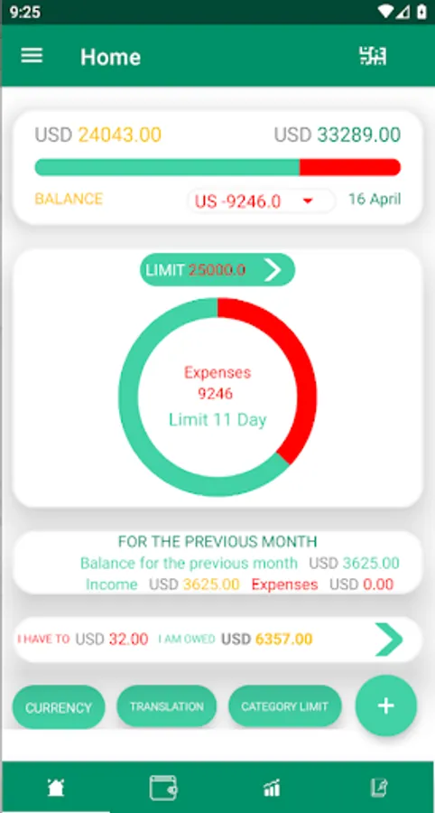 На главной странице можно перейти к истории расходов и доходов. Редактировать, добавлять, удалять расходы или доходы, и при этом общая сумма, отчеты и статистика соответственно обновляться.