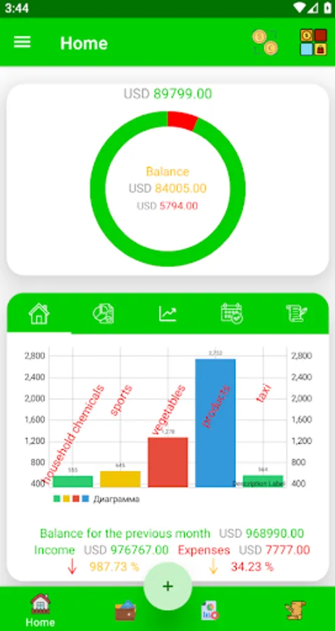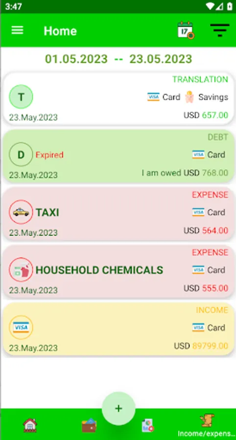 In the application, you can make a report and also see the history of finances. You can make a filter for history, as well as for reports. Make transfers between accounts. Create debts to see your own budget spending. You can make a selection of costs by a certain date and they will be displayed as a list.
