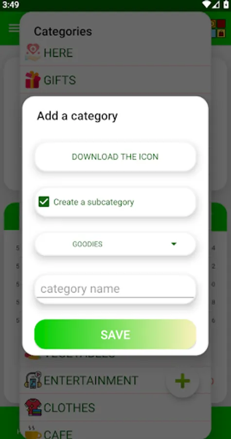 Add icons for categories and subcategories. Categories can be created both on the main page and when creating an expense. Categories can be deleted.