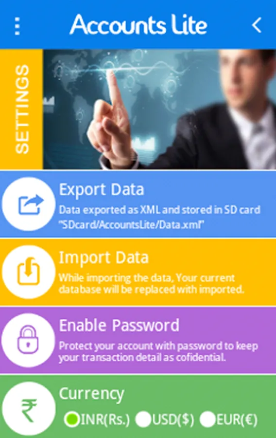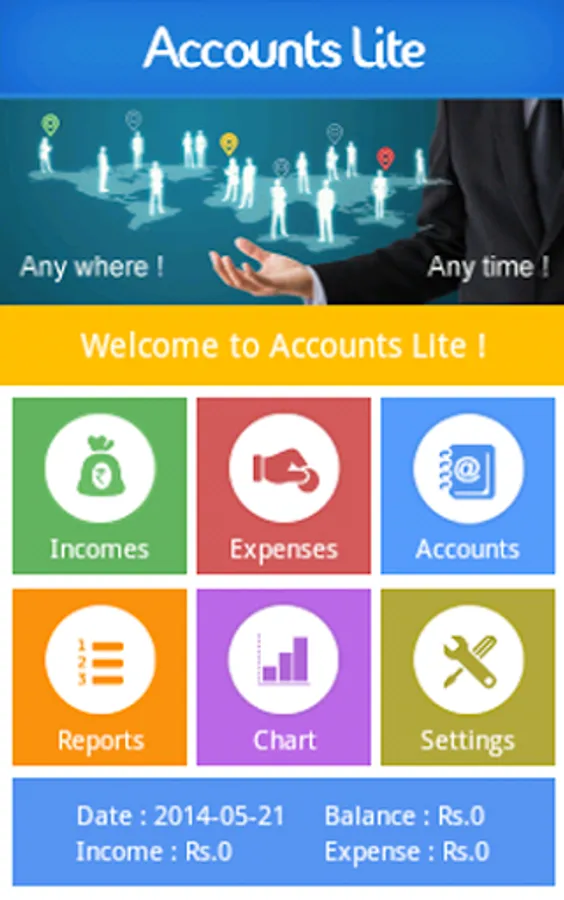 It gives the income and expense details as daily/monthly basis and includes the graphical representation of your finance information using charts like pie-chart and bar-chart.