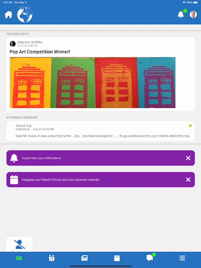• View the school calendar and noticeboard, with information relevant to you and your child