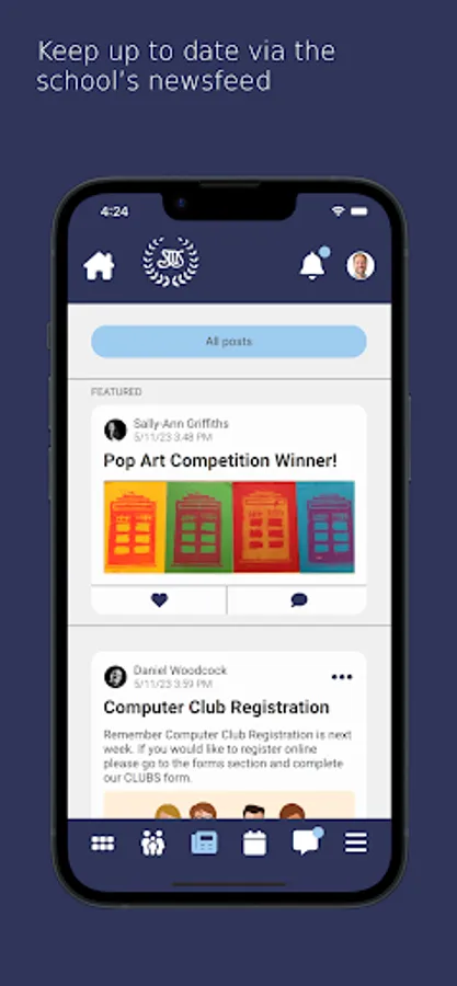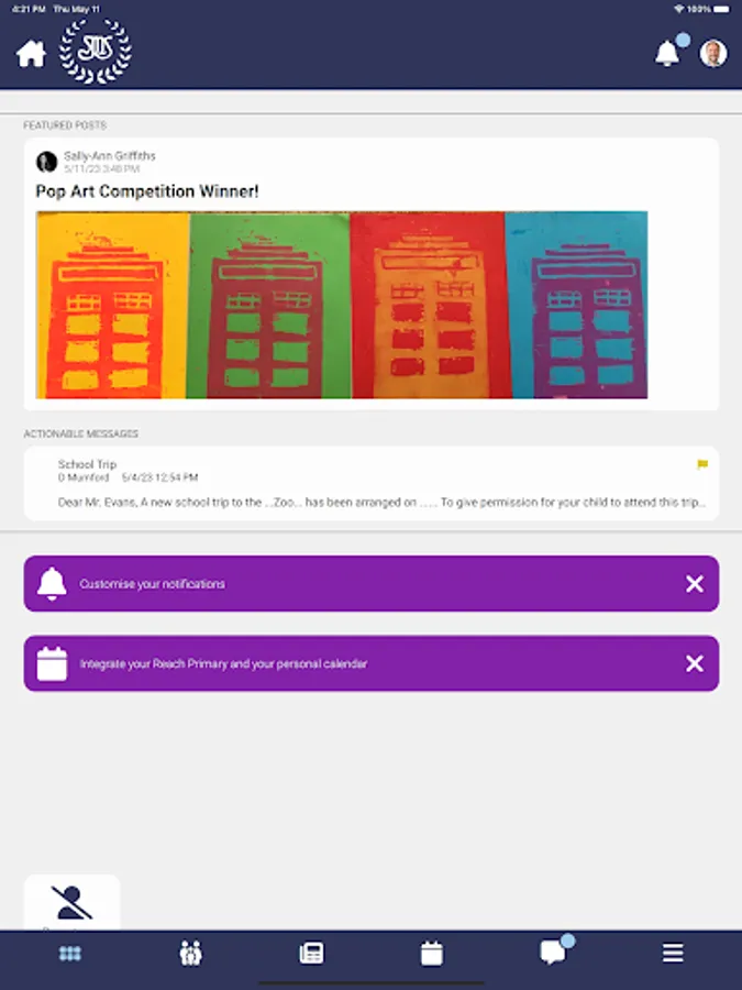 • View the school calendar and noticeboard, with information relevant to you and your child.