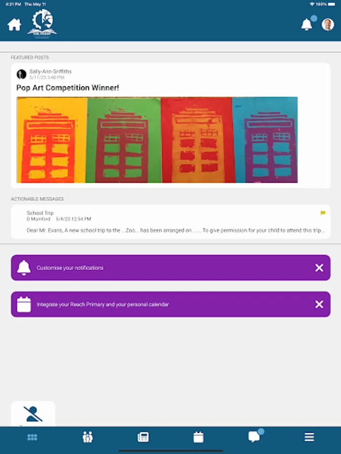 • Clear and visible Notice updates for important school events.
