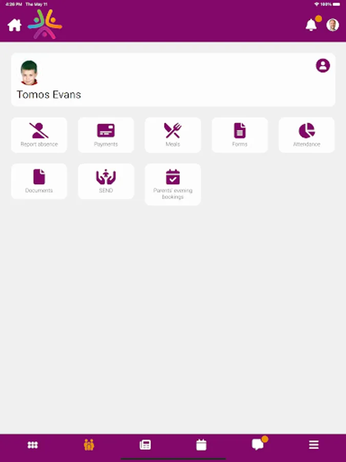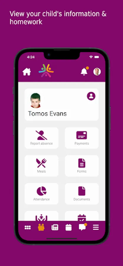 • View the school calendar and noticeboard, with information relevant to you and your child.