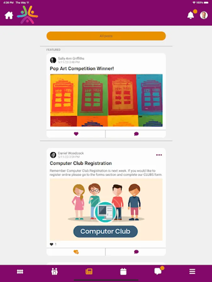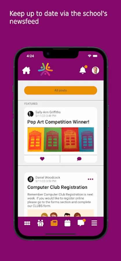 • Keep up to date with your children’s activities via the Newsfeed.